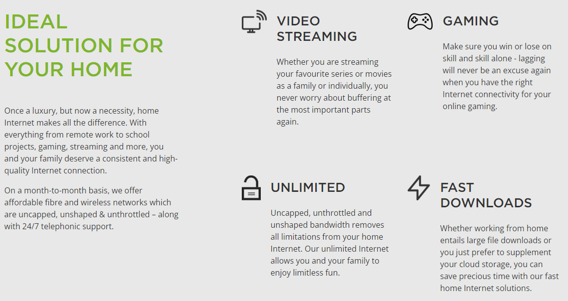 Frogfoot Fibre Internet enables you to take full advantage of streaming services such as NETFLIX, Amazon Prime, Showmax,
